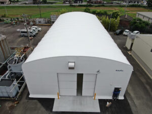 今回は、筑前町にある農薬会社さんの農薬製品保管用のテント倉庫新設工事を行いました。